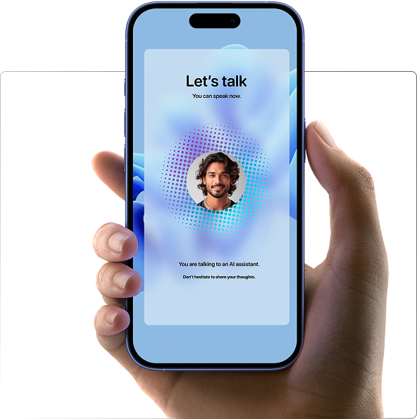 Respondents can start anytime it suits them. They simply speak — openly, effortlessly, in their own words. Our AI listens, understands, and intelligently structures their responses while automatically completing the survey in the background. No typing. No friction.