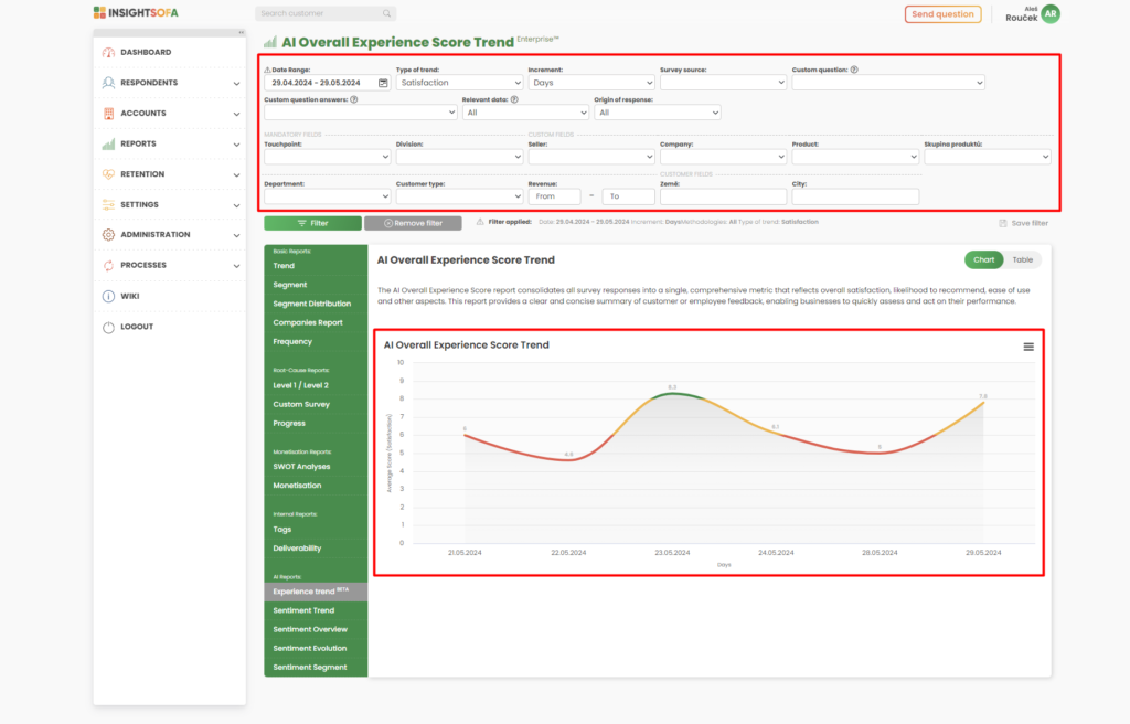 Zpráva o trendu Overall Experience Score
